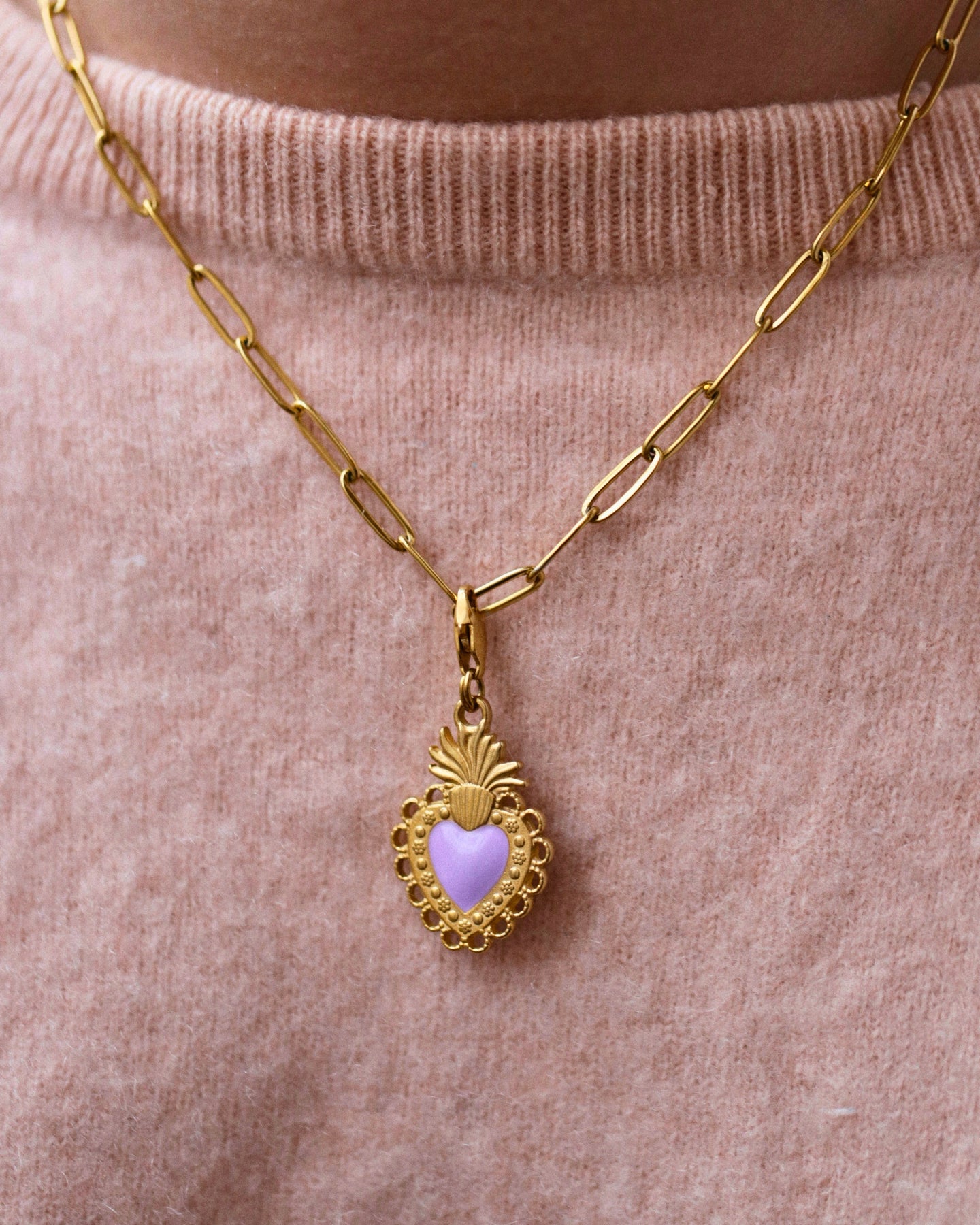 The allure of an ex-voto charm, reimagined in a range of colours. A delicate pendant to wear close to your heart.