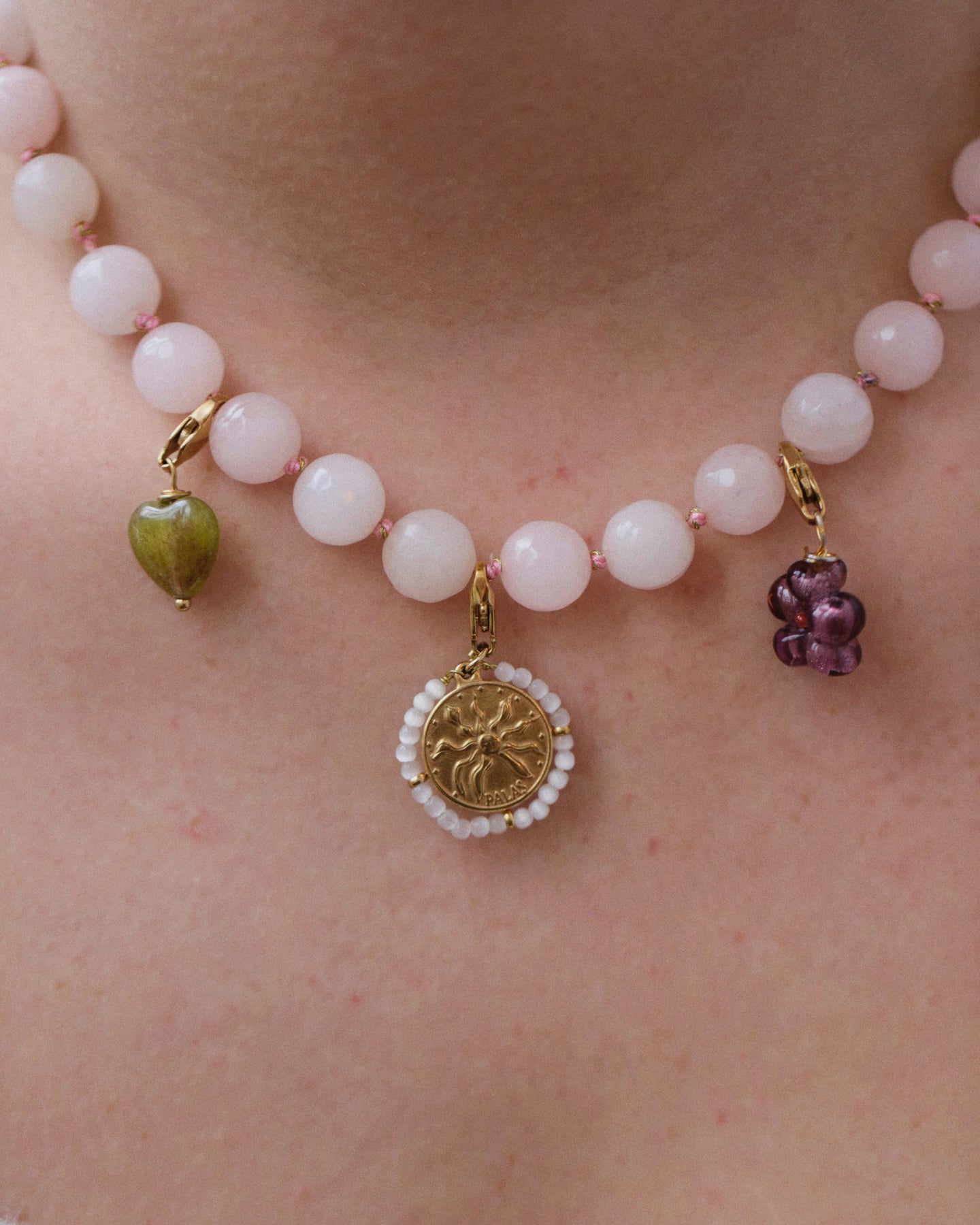 Heart-shaped agat—a true symbol of love. Fall for our soft-coloured charm, a pendant perfect for wearing on either a necklace or bracelet. The perfect gift to say “I love you.”