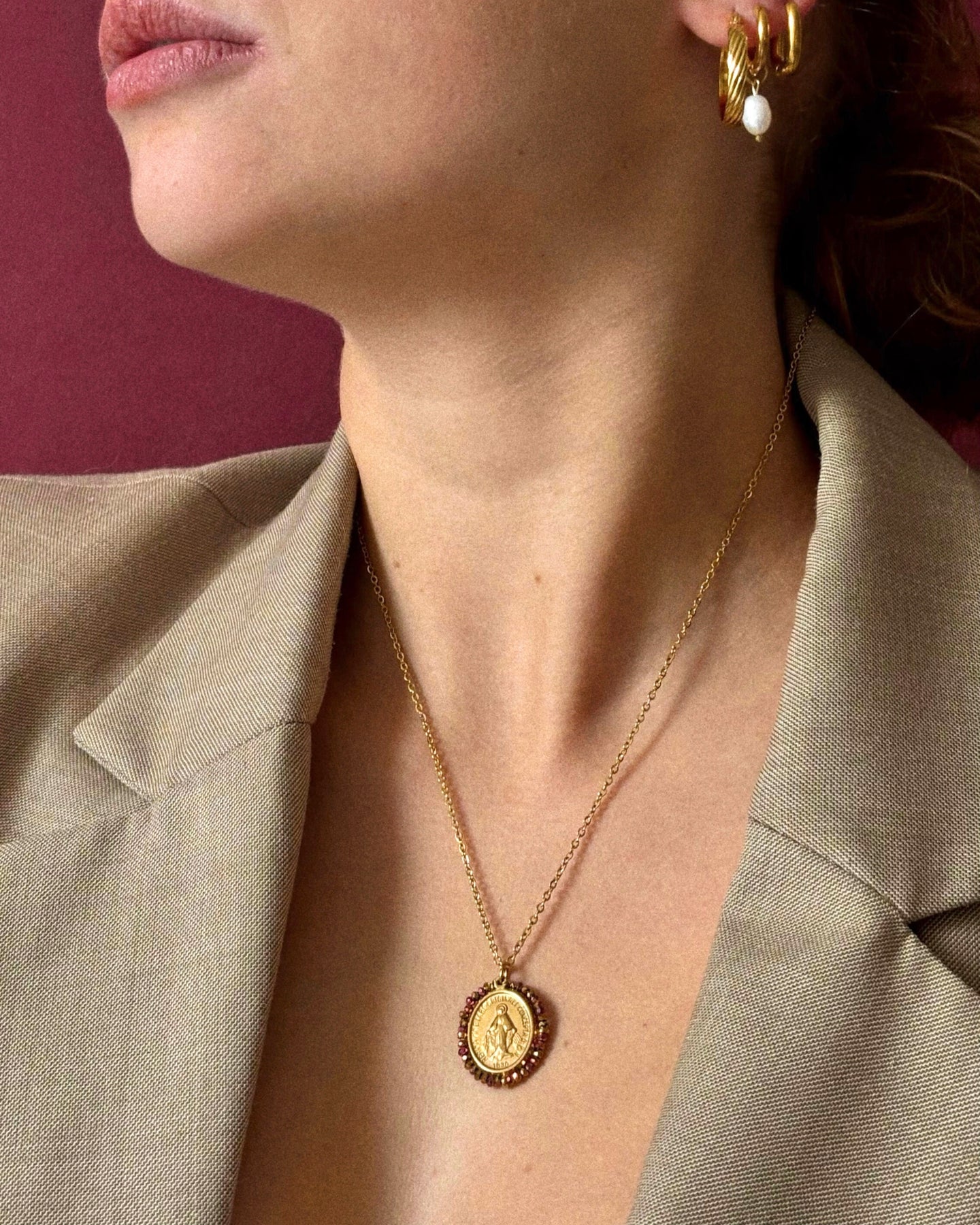 Disponible dans de nombreuses couleurs différentes, notre collier médaille Santa Maria est un bijou hypoallergénique qui se porte en toutes circonstances.