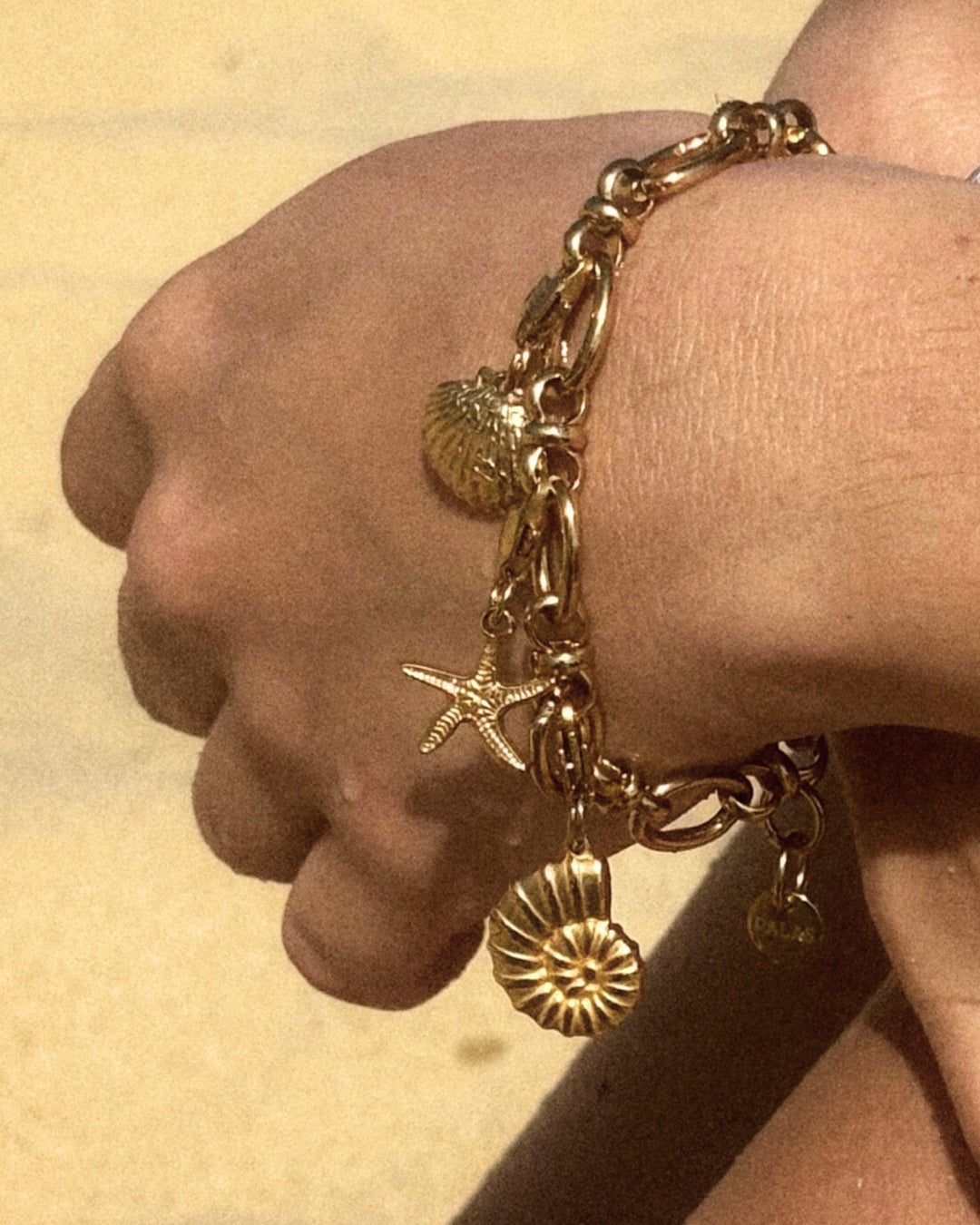 Charm and clasp in golden stainless steel