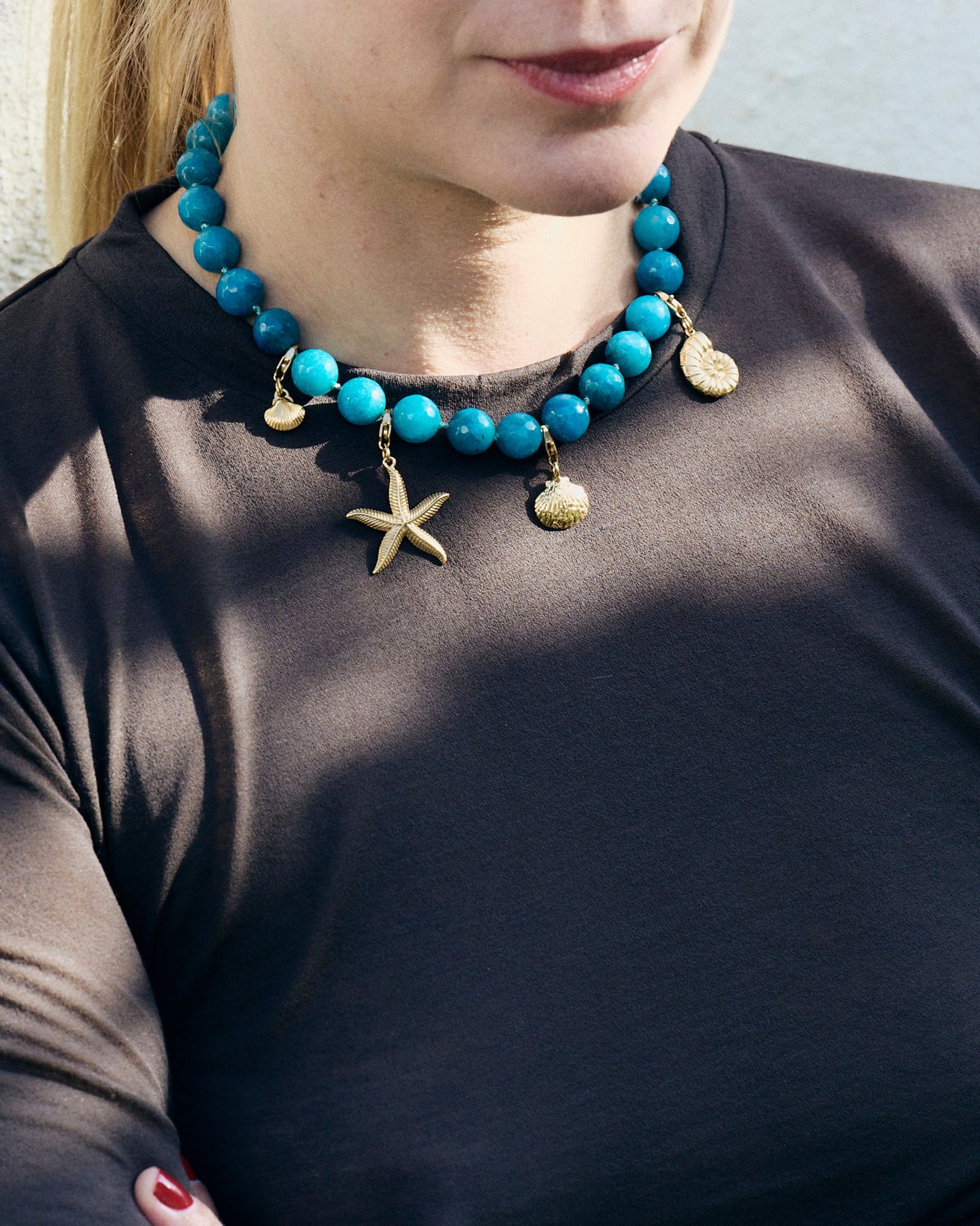 The golden stainless steel we use requires very little maintenance. It does not tarnish when in contact with skin or water (even saltwater) and will not cause any skin reactions. It is for all these qualities that we have chosen it for all our jewelry.