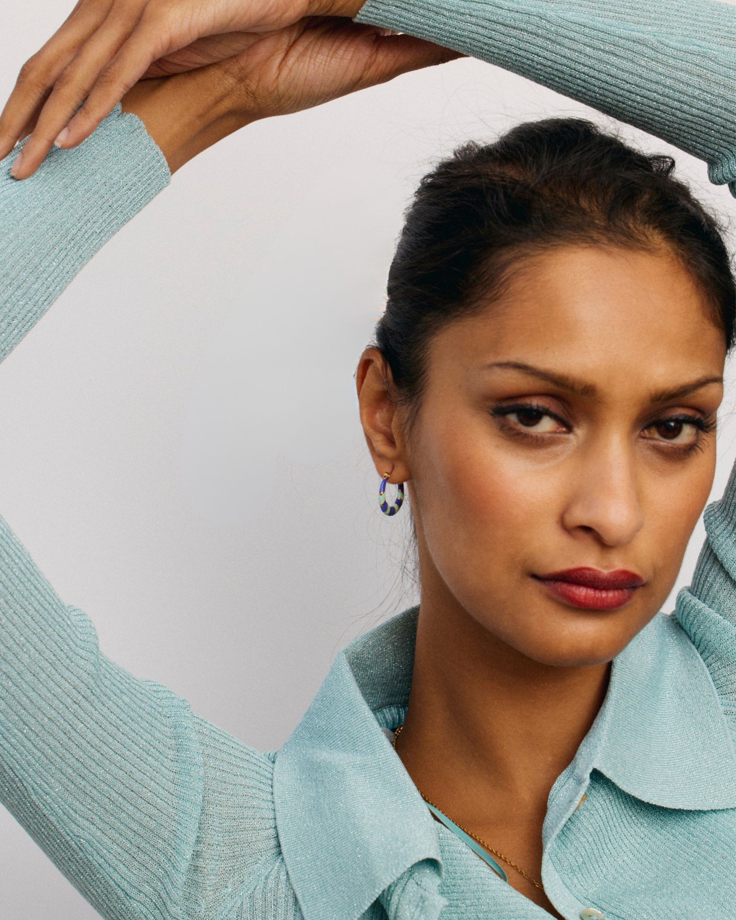 Inspired by the one and only Twiggy and her iconic looks from the 60s, our colorful hoops are the perfect addition to your ear stack.